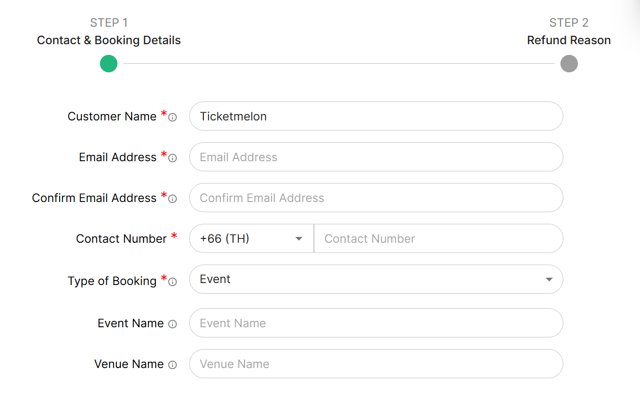 2. Fill in your booking details and upload any required evidence, then select your refund reason. Once complete, click Submit Refund.