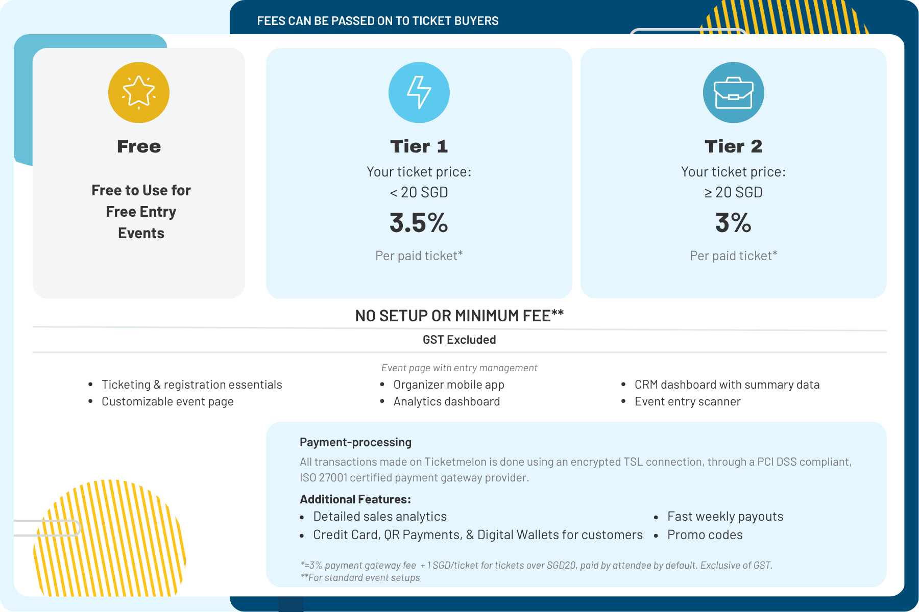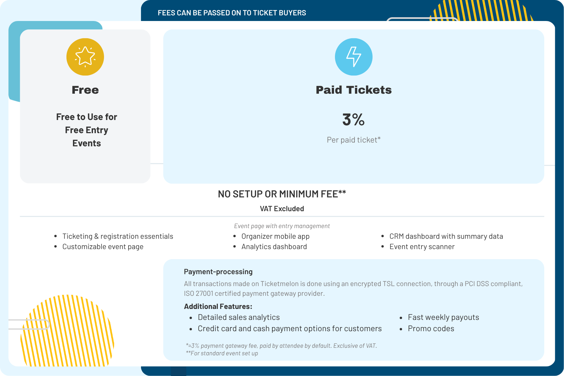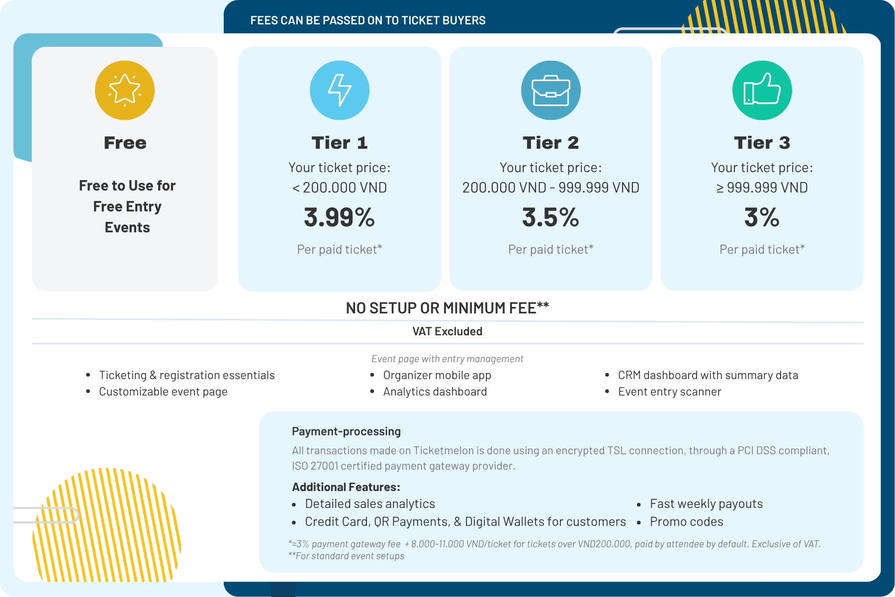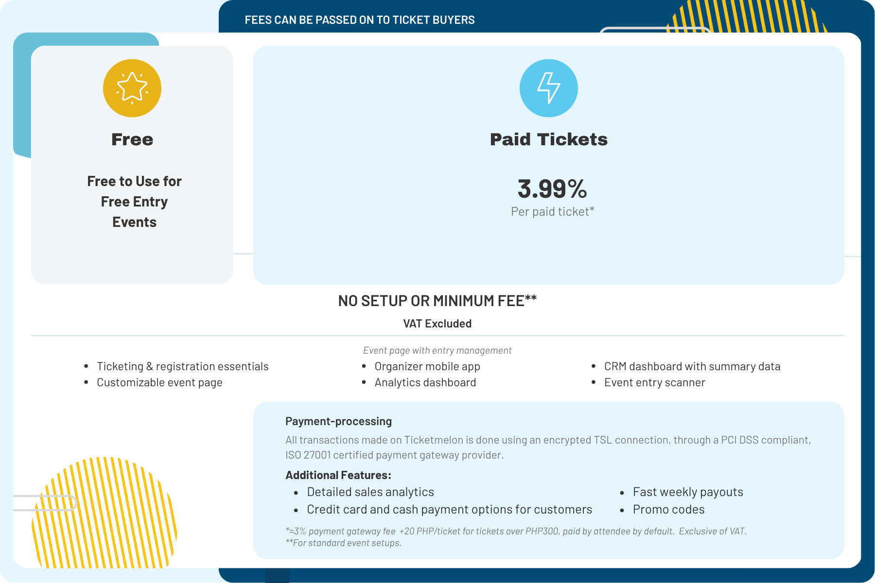 Fees are calculated based on your ticket price. There are no fees with free events.